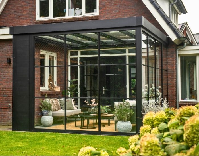 Een zwarte kas trekt de blik zonder te schreeuwen. Het profiel is strak, de lijnen zijn duidelijk en het glas houdt alles licht en ruimtelijk. Kweek, ontspan of combineer beide functies in één doordachte opstelling. Wilt u sparren over maatvoering, indeling of plaatsing? We helpen u graag.